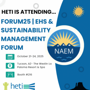 HETI is excited to be exhibiting at NAEM Forum25: EHS & Sustainability Management Forum, October 21–24 at The Westin La Paloma Resort & Spa, 3800 E Sunrise Dr, Tucson, Arizona 85718!